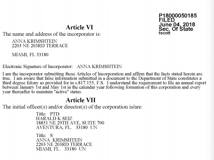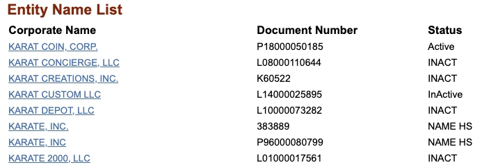 Und dann ist da noch die vermeintliche Bank in Miami. Vor etwa 8 Monaten auf einer Veranstaltung in Atlanta verbreiteten Karatbars-Führungskräfte unwahre Behauptungen. “Haben Sie das Bankgebäude in Miami gesehen, haben sie gesehen, dass die Bank echt ist, haben sie das Bankgebäude gesehen, hat es euch gefallen?”, schreit Dirk Zahlman von den Bühne und versucht Glaubwürdigkeit beim Publikum herzustellen. Die Bank in Miami hätte 100 Millionen US-Dollar gezeichnetes Kapital, wobei lediglich 50 Mio. erforderlich gewesen wären. Der CEO Harald Seiz und Vorstandsmitglied Josip Heit lassen nicht kleckern, wenn dann wird richtig geklotzt. Wir schauen ins dortige Unternehmensregister und suchen nach Firmen die “Karat Coin”, “Karat Gold”, KaratCoin Bank”, “Karat Bank”, “KBC” usw. im Namen enthalten haben. Vergeblich. Der einzige Treffer ist eine Corporation unter dem Namen “KARAT COIN, CORP.” mit Sitz in New York, aber keine Bank in Aventura, Miami. Lediglich als Business-Adresse wurde der Raum Nr. 700 an der 18851 NE 29th Ave in Aventura, Miami, angegeben. Bei dem an diesem Adresse befindlichen Bürogebäude handelt sich jedoch um kein Bankgebäude, sondern vielmehr um Büros, die man auch auf stündlicher Basis anmieten kann (https://www.davincivirtual.com/loc/us/florida/aventura-virtual-offices/facility-974). Bei dem Raum Nr. 700, aus der heraus die Corporation angeblich operiert, handelt es sich um ein sog. Virtual Office, welches man schon ab rund 60 US-Dollar pro Monat anmieten kann.