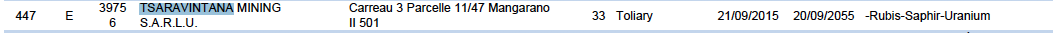 Die Minen in Madagaskar, die nach Angaben eines selbst in Auftrag gegeben Bewertungsgutachtens bei einem unbekannten Revisor aus dem Frankfurter Raum über angeblich 22 Tonnen an Gold-Potenzial verfügt, sind unter den Lizenznummern 39756 und 15745 angeführt, welche der Firma TSARAVINTANA MINING S.A.R.L.U. gehören und für den Abbau von Rubinen, Saphiren, Uran, Rhodium, Malachit und Mica, aber nicht für Gold, freigegeben sind.