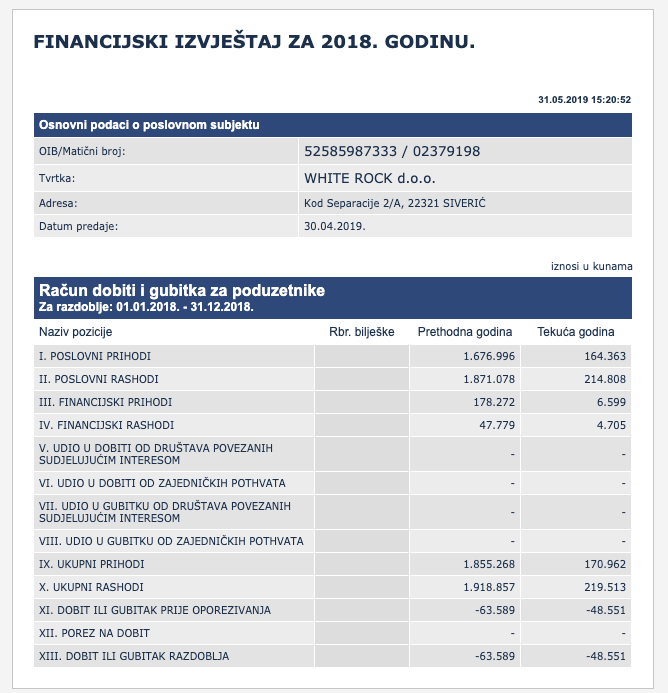 Schaut man in die Gewinn- und Verlustrechnung für das Finanzjahr 2018 der kroatischen White Rock d.o.o. weist diese sogar einen Verlust von 48.551 Kuna aus (etwa 6.500 Euro). In der Aktiva sucht man vergeblich einen entsprechenden Vorratsvermögenswert, der dem errechneten Buchwert im Bewertungsbericht von 938,8 Millionen Euro und der 50%igen Anteil an Fort Dauphin nur annähernd darstellen würde.